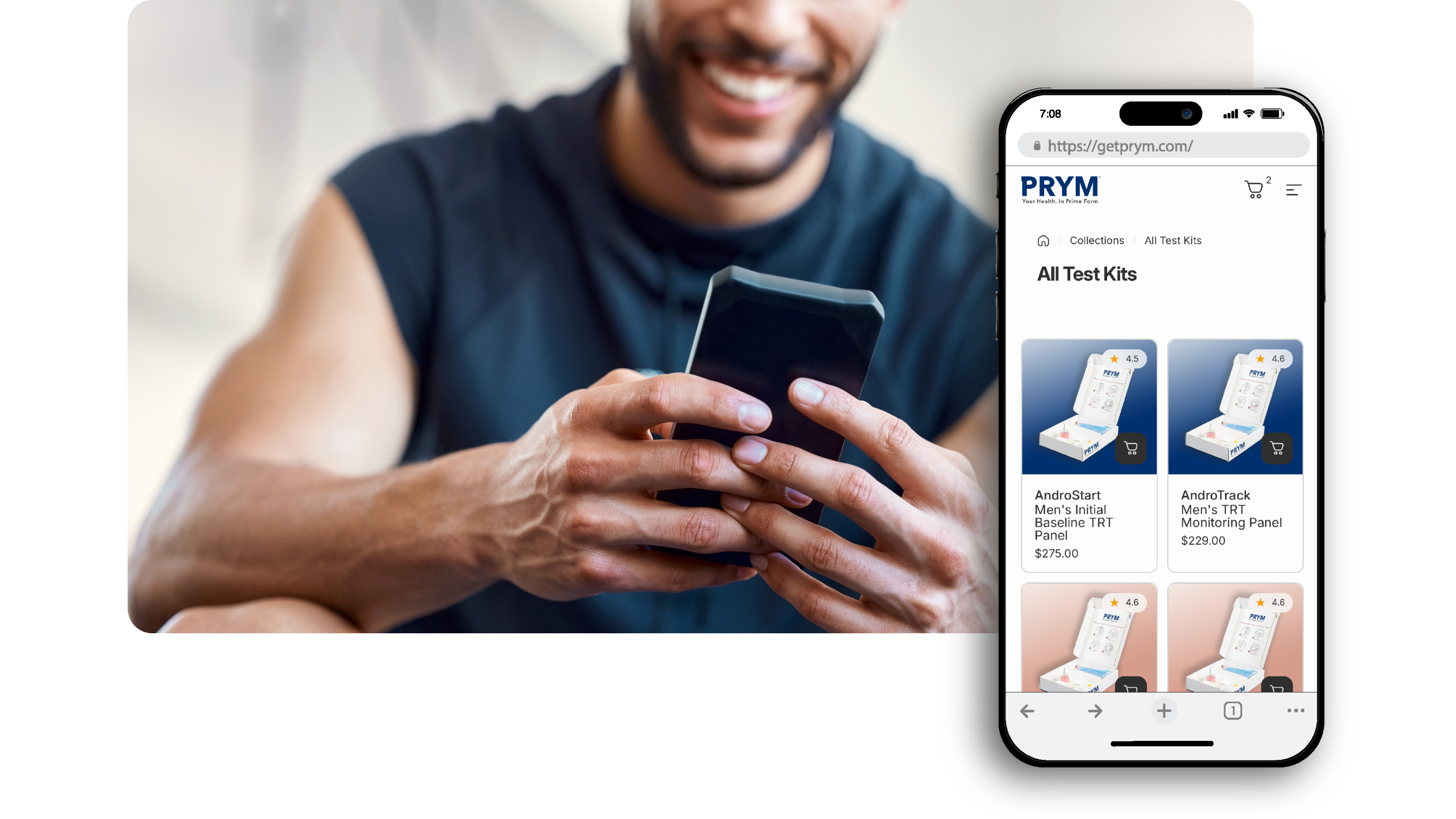Ready to understand your hormone health but not sure where to start? PRYM T-Core™ is your affordable gateway to comprehensive hormone analysis. This at-home panel provides a foundational understanding of your unique hormonal profile, giving you a clear picture of your testosterone levels and key data on how your body regulates strength, energy, mood, and fertility. It's the most accessible way to stop guessing and start getting the data you need.